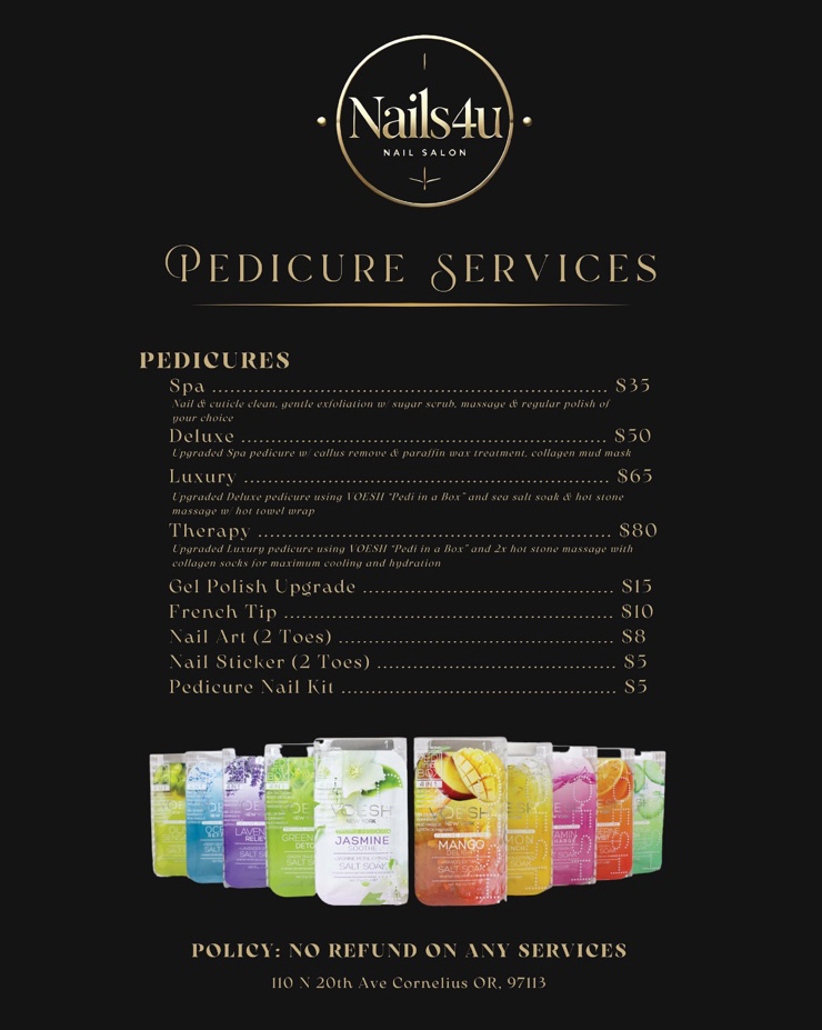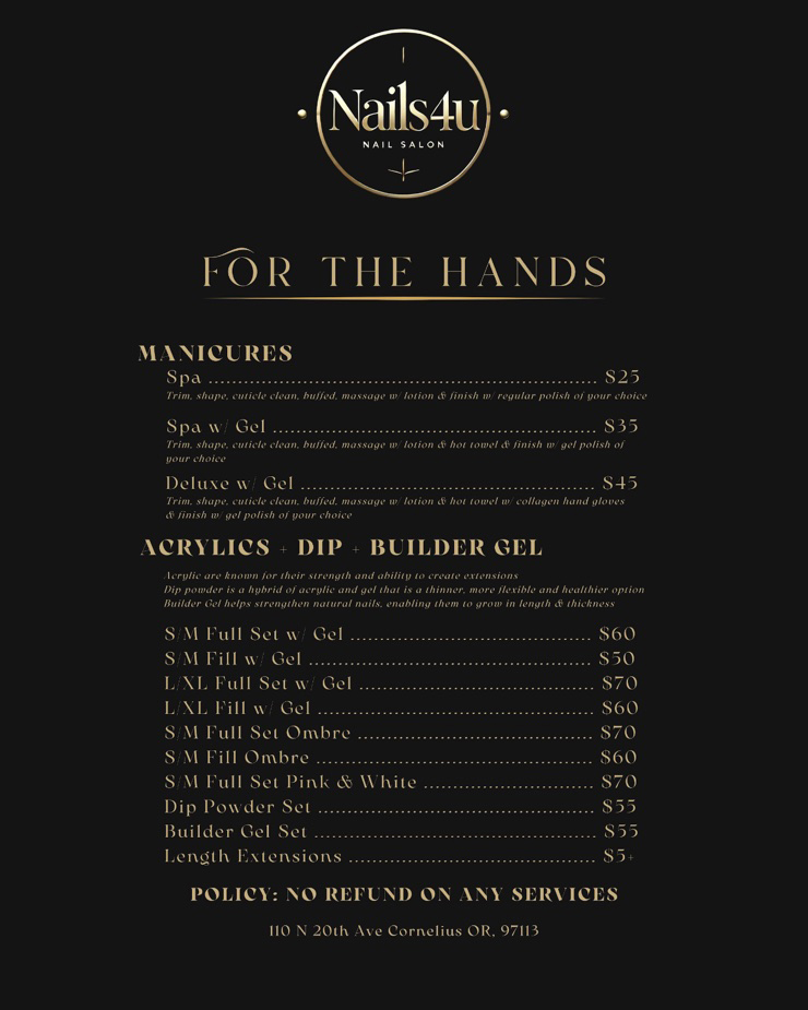 Nails 4 U - Immerse yourself in a luxurious atmosphere and indulge in ultimate relaxation. With our team of professional nail technicians and high-quality products, we are committed to providing you with perfect nails and a world-class experience.
